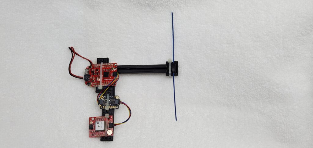 The night before launching the balloon test the transmitter and the receiver. Use the USB cables to connect both SAMD21 Pro Rf boards to a computer or other suitable power source. Make sure the GPS receiver is locked and that all readings are being updated on the display. Let it run for several hours or all night. Make sure that the batteries are fully charged. Look at the SD card to make sure the data has recorded correctly and completely. Erase the SD card and re-install it in the SD card board. The balloon can be filled or purchased the night before (see the section on filling the Balloon).